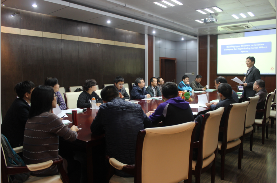 本次会议围绕复分析、泛函分析、微分方程等研究方向的热点问题和重要问题,分了12场学术报告。会上,嘉兴学院徐宪民教授作了题为《Beurling type theorem for a class of reproducing kernel Hilbert spaces》的邀请报告,我校褚玉明教授、欧阳耀教授、郑敏玲副教授等就各自的研究成果作了专题报告。与会人员还就地方高校数学学科建设、人才培养等议题开展了充分的研讨。