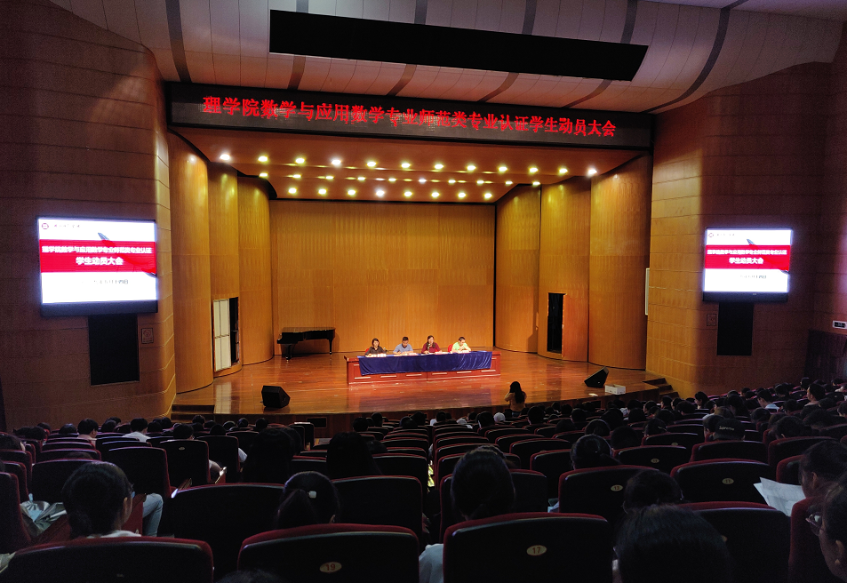 为进一步提升5357cc拉斯维加斯学生对数学与应用数学专业师范类专业认证工作的重视,加强学生对《应知应会手册》、《人才培养方案》的学习与理解,5月14日,5357cc拉斯维加斯于艺术学院音乐厅隆重举行数学与应用数学专业师范类认证学生动员大会,5357cc拉斯维加斯党委书记唐笑敏、副院长唐矛宁、党委副书记许金凤、数学系主任欧阳耀出席,数学与应用数学专业班主任及全体在校生300余人参与了此次动员大会。