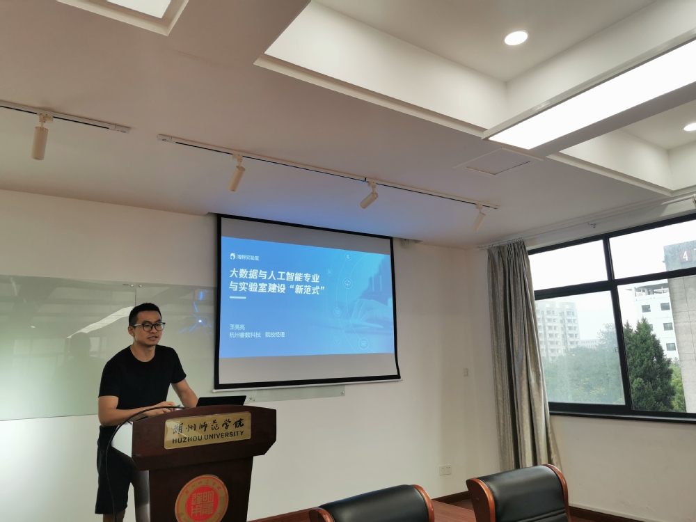会上,杭州睿数科技院校经理王亮亮做了“大数据与人工智能专业实验室建设新模式”的专题报告,专业负责人详细介绍了申报市重点实验室的进展、面临的问题、未来规划,专业老师和学生代表也对目前正在使用的实验室平台中存在的问题一一提出。王亮亮表示将会对本次洽谈会中汇总的问题认真分析,将会根据学院人才培养需求调整试验平台设置,更好的服务专业发展。