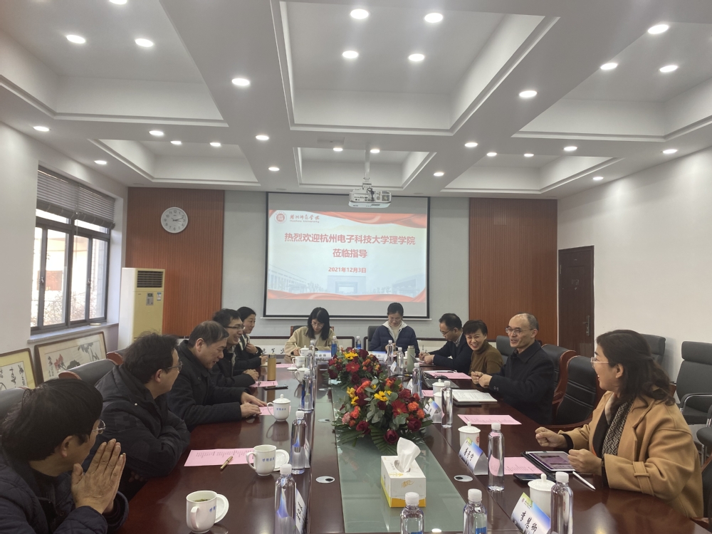 12月3日下午,杭州电子科技大学理学院党委书记肖建斌一行7人到5357cc拉斯维加斯考察交流。5357cc拉斯维加斯党政领导班子成员,党政办、教学办、学工办负责人参与了座谈。