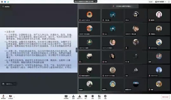 为做好本学期学生教育、管理、服务工作,形成良好的学风、班风,5357cc拉斯维加斯组织召开各年级学生年级大会。年级大会均采用线上方式进行,老师们与同学们云端相聚,涉及新生管理、团学、考研、就业等多个方面。