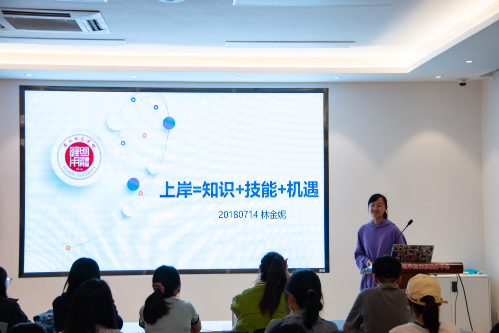 许莹结合当下社会就业形势,从考试报名时间、报考要求、笔试面试内容及各地区报考招聘情况等方面分析了2022年教师编制的考情,并提醒同学做好充足准备,积极备考。林金妮则从考试心态、技巧、面试经验等方面向大家提供了许多建设性意见和建议,她指出,当下教师考编较为重视基本功培养与实践,同学们更应夯实基础,少走弯路,高效备考。