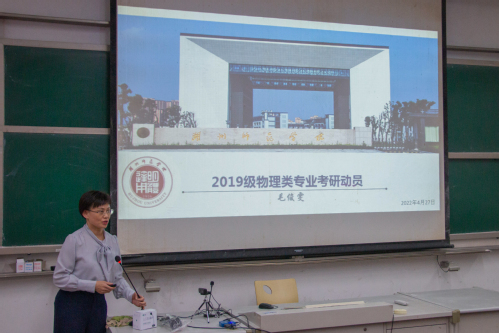 接下来,黄文华教授和毛俊雯教授分别作动员讲话。黄文华重点结合科学教育专业就业方向和专业基础,引导同学们要有危机意识,把考研作为自己的一个选择,并鼓励同学们对考研要有信心。毛俊雯教授介绍了考研的意义包括提高就业竞争力、开阔视野、到想去的地方学习工作以及实现学术梦想;分析如何从选学校、选专业、专业课复习等方面做好考研规划,最后还介绍了历年优秀毕业生代表,鼓励同学们向学长学姐学习,树立远大志向。