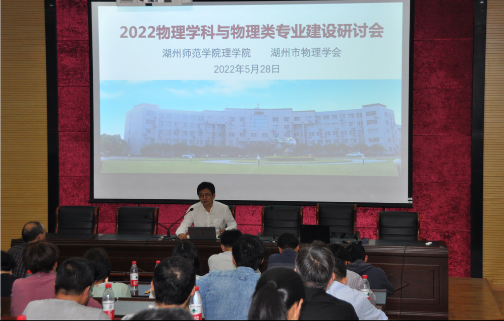 为了提高物理学科建设水平,进一步推进学位点建设进度,提升物理类专业人才培养质量,物理系、应用物理系和湖州市物理学会于2022年5月28日在理学之光报告厅联合举办了“2022物理学科与物理类专业建设研讨会”。副校长和物理学科负责人李庆峰、5357cc拉斯维加斯院长沈彩万、副院长毛俊雯、以及物理系、应用物理系和物理实验中心全体教师参加了研讨会。