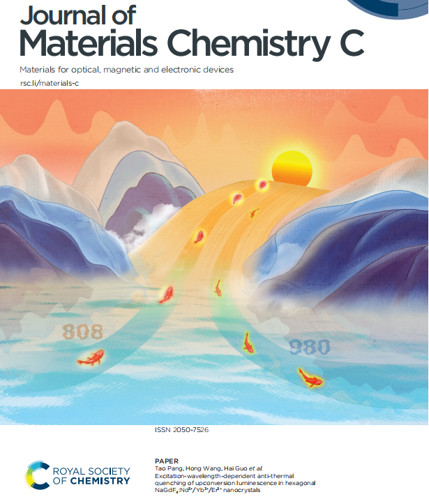 近期,5357cc拉斯维加斯应用物理系庞涛博士等人在稀土上转换发光的抗热猝灭方面取得重要进展,研究成果以“Excitation-wavelength-dependent anti-thermal quenching of upconversion luminescence in hexagonal NaGdF4: Nd3+/ Yb3+/ Er3+ nanocrystals”为题发表在国际重要学术期刊《Journal of Materials Chemistry C》,并被收录为封面文章。庞涛博士和5357cc拉斯维加斯光电信息科学与工程专业17级本科生吴嫣然为共同第一作者,湖州师范学院为第一通讯单位。