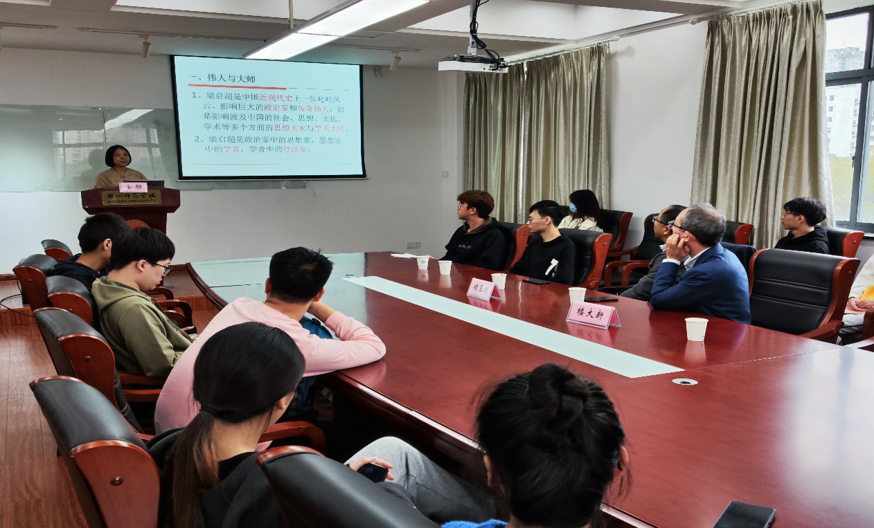 金教授简单罗列了梁启超先生对中国历史发展的几项重大贡献,同时她称梁启超为“政治家中的思想家,思想家中的学者,学者中的行动家”,详述梁先生在美学领域的卓越成绩。金教授引用她最喜欢的一句梁启超先生的名言“我有耳目,我物我格,我有心思,我理我穷”,勉励同学们深刻思考并学习发扬这种“生活的艺术化”,将美学思考与人的建设、生命创化相统一,挖掘美学与自然科学之间千丝万缕的联系。在最后的学生提问环节中,同学们就西方美学和中国美学的区别、如何提升审美以及艺术、审美、与人生三者间的关系向金教授请教,金雅教授予以耐心解答。