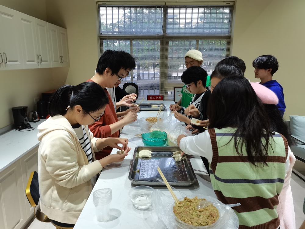 会议分为两个阶段,第一阶段——心理委员工作交流。各班心理委员就班风、学风、同学人际关系以及开展心理工作的心得体会进行了深入的交流。随后,心理辅导员重点介绍了心理委员对班级的重要性以及工作职责,并强调“心理委员应在日常生活中细心观察,积极了解同学们心理状况的变化,及时反馈异常情况。”在第二阶段,各班心理委员和辅导员、班主任一起包饺子,大家借此机会相互认识、相互了解,老师们为学生答疑解惑,各班心理委员也相互交流工作经验。