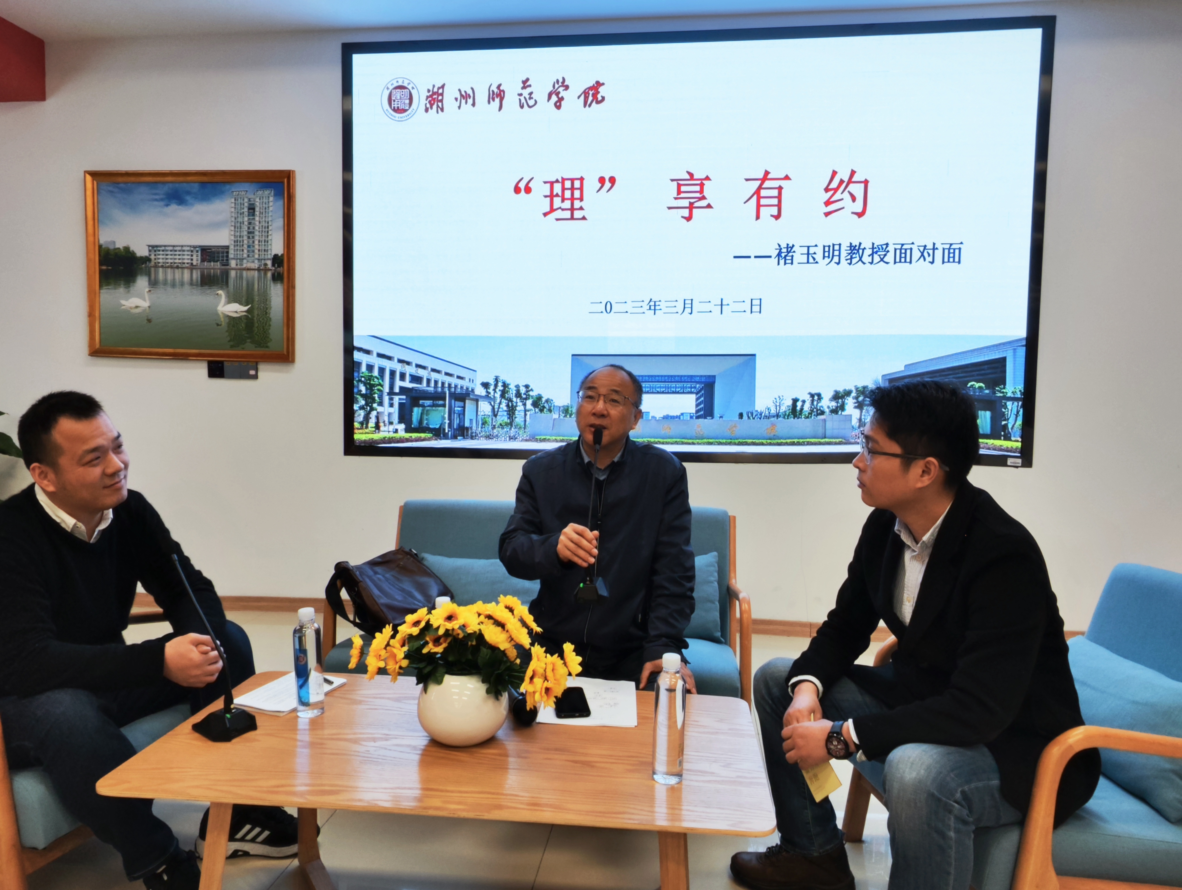 在本次活动中,褚教授首先结合求学经历,指出大学生涯是每个人一生中的黄金时期,科研灵感和创新点是垂青于有准备的人的,大学阶段要夯实基础、刻苦努力,广泛阅读优秀的文献,找到自己感兴趣的研究方向,多参加学术会议,了解当下研究热点,同时,保持良好的师门关系、朋辈之间的交流切磋,这些都能让大家厚积薄发,在海量积累和日常学术研讨中碰撞出灵感火花,以此发表高质量的论文便是水到渠成。接着,褚教授分析了从教20余年从湖南师范大学工作到之后回到家乡湖州师范学院任教的心路历程,并为在场和线上的同学们提供了成为好老师的建议:一是心胸开阔,海纳百川;二是道德崇高,仁爱之心;三是学识渊博,学术精进;四是能力出众,善于管理。褚教授指出,数学学科虽然深奥,但是以其严密的推理和逻辑,涵盖社会生产生活和实践的各个领域,并且,他鼓励同学们在未来积极深造,拓宽视野,用所学为社会做贡献。