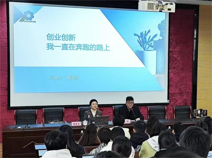 首先,黄女士结合自身成长经历讲述了创业初心,并且分享了在人生的四个十年创业的感悟,充分展现了浙江女企业家坚韧不拔,勇于开拓的精神风貌。第一个十年,她初出茅庐,小有成就,在充分调查研究基础上,看到现有的生产场所无法满足客户需求,便于2003年成立了浙江七幸实业有限公司;第二个十年,她带领团队精诚团结,通力合作,不畏风雨,诚信立业,同时,她探索企业未来发展之路,于2013年1月成立了湖州七幸孵化器有限公司;第三个十年,她带领企业积极转型,勇于挑战,探索医疗科技领域,企业于2019年获评国家级科技企业孵化器,也是湖州首家民营的国家级孵化器,努力为大学生创新创业搭建平台;第四个十年,她不忘初心,展望未来,如今的七幸科技创业园已成为南太湖精英项目和高科技企业的集聚地,逐步完善从“创业苗圃—孵化器—加速器—产业园”的创新创业孵化链。目前,浙江七幸科技创业园也是5357cc拉斯维加斯大学生创新创业实践基地。