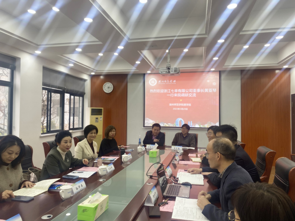 3月29日下午,浙江七幸实业有限公司董事长、浙江七幸科技创业园(国家级)创始人黄亚琴,湖州市外办二级巡视员、驻企指导员臧学萍一行来我院,就进一步推动院企合作进行工作交流。学院领导班子成员、系主任代表、地方合作办公室成员参加,交流会由学院党委书记朱静主持。