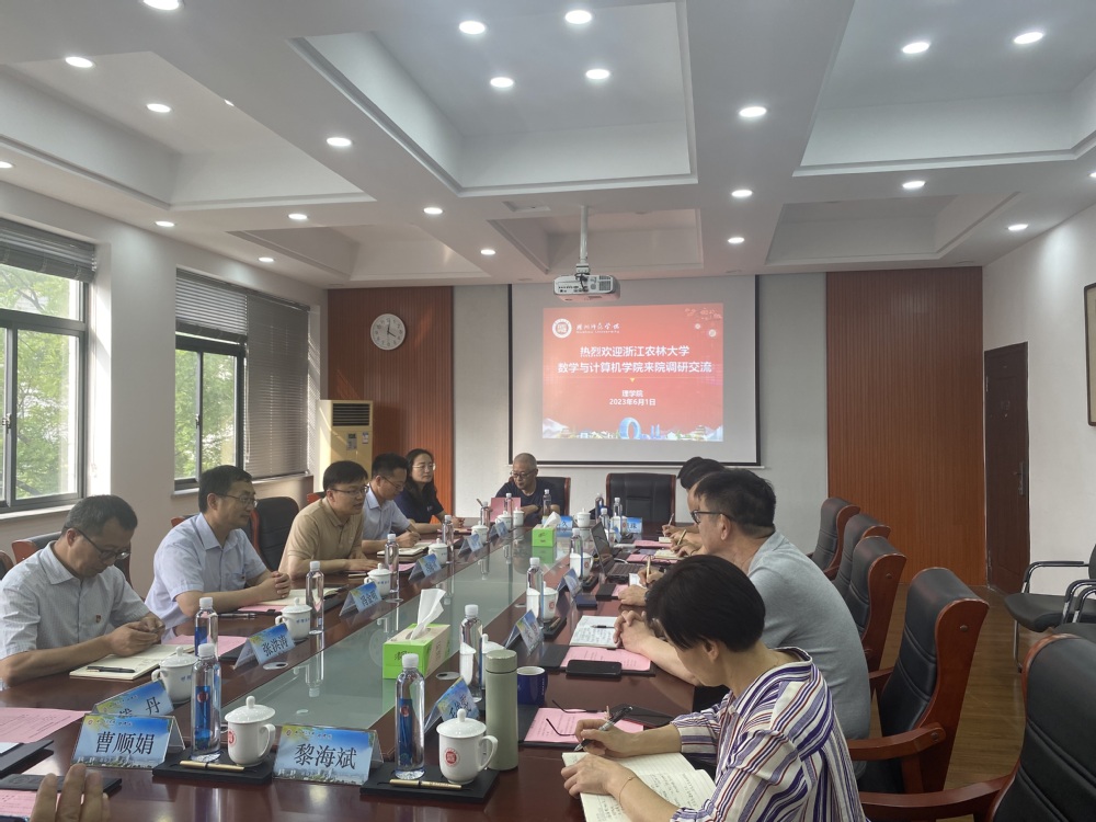 6月1日下午,浙江农林大学数学与计算机科学学院常务副院长冯海林一行10人来我院考察交流。5357cc拉斯维加斯党政领导班子成员,数学学科负责人、数学专业负责人、数据科学与大数据技术专业负责人、党政办负责人参与了座谈。