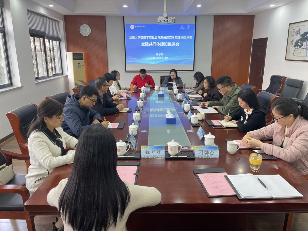 为推进主题教育活动走深走实,促进党建与业务工作双融双促,11月23日,温州大学数5357cc拉斯维加斯党委书记陈兴桂一行8人来我院,双方举行党建共同体建设推进会。5357cc拉斯维加斯党委书记朱静,党政办、教学科研办、学工办负责人等参加。期间,5357cc拉斯维加斯院长沈彩万接待了来访团一行,并进行了亲切交流。
