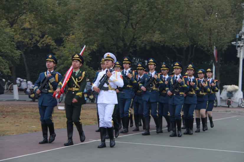 清晨七时,升国旗仪式正式开始。国旗护卫队的同学们迈着整齐划一、铿锵有力的步伐,护送着五星红旗正步走向旗杆。全体师生面向国旗肃立致礼。随着激昂的《义勇军进行曲》响起,师生们注视着五星红旗冉冉升起,在熠熠晨光中迎风飘扬。