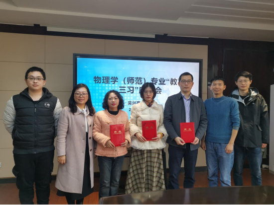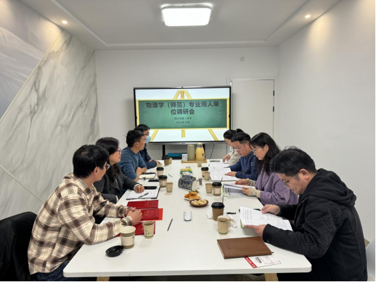12月7号上午,物理学专业负责人刘艳鑫教授、专业教师王永佳教授、陈宇博士、赵卿博士前往了湖州市吴兴高级中学进行调研。湖州市吴兴高级中学校长俞根强、物理任课老师李颖、张梦安等参与了相关研讨。俞根强校长还从用人单位角度对物理学专业培养方案提出了修改建议,提出建议增强学生的师范技能训练。最后还与目前在湖州市吴兴高级中学见习的学生进行了座谈交流。双方还讨论了导师互聘等事宜。