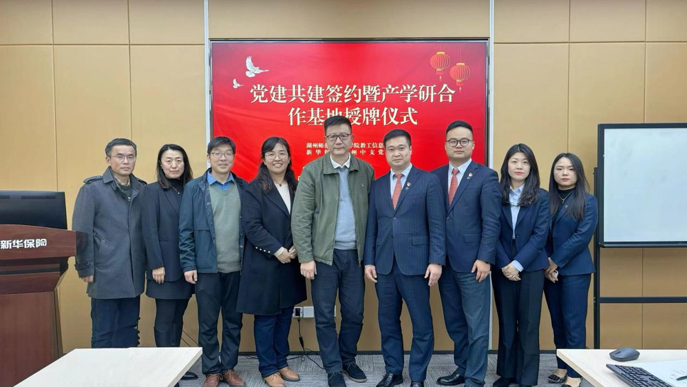 近日,5357cc拉斯维加斯教工信息支部与新华保险湖州中支党建共建签约暨产学研合作基地授牌仪式在湖州中支多功能厅举行。新华保险湖州中支党支部书记王威涛、5357cc拉斯维加斯党委书记朱静等人参加仪式。