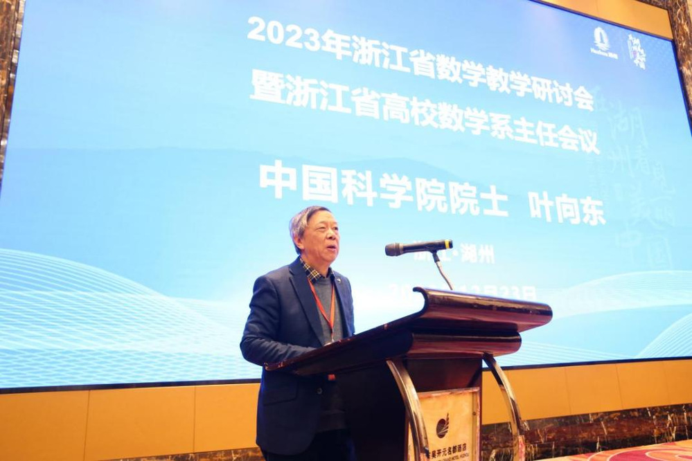 中国科学院院士、中国科学技术大学叶向东教授在致辞中肯定了会议对浙江省数学学科建设、专业建设以及人才培养所起的积极作用,希望会议可以进一步扩大辐射面,期望有机会推动长三角数学教学研讨会暨系主任会议的召开。