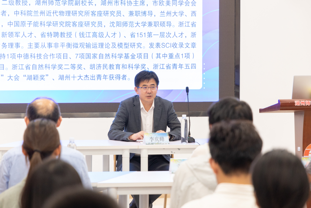活动伊始,李庆峰教授从自己的家乡谈起,分享了自己的求学和工作历程,并向同学们介绍了自己培养的优秀学生。他重点分享了三个方面,第一,兴趣是最好的老师。他提到:“对核物理的兴趣是自己开展科研最好的动力,希望同学们找到自己的兴趣点,保持对学习的兴趣。”第二,学习很辛苦。他回忆了自己求学路上的点点滴滴,告诉同学们“学习是苦的,但研究是甜的,希望同学们懂得坚持”。第三,李教授分享了自己阅读和运动的兴趣爱好,希望同学们养成终身学习和锻炼的习惯。李教授精彩的分享让在场的师生无不感受到他作为一位长者、师者,严谨的治学态度,开阔的科研思路和丰富的工作阅历。