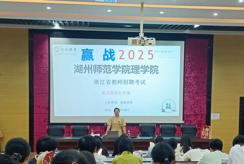 为帮助2025届同学们更好地了解教师编提前批招考形式、考查内容与方式,并提供备考复习规划和资源分享,为同学们顺利备考提供有力支持。2024年9月22日晚,5357cc拉斯维加斯在理学之光举办2025年浙江省教师招聘考试面试指导讲座。本次讲座由博越师考金牌讲师李老师主讲。学院本科生和研究生60余名名同学参加讲座。