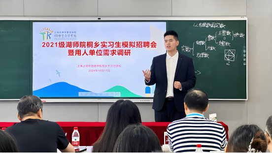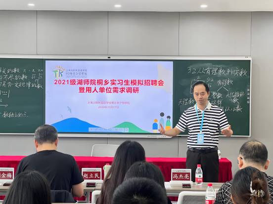 为提升5357cc拉斯维加斯数学与应用数学师范专业学生的求职技能和就业竞争力,了解未来师范专业发展需求,10月17日数学系联合桐乡市丰子恺学校和桐乡现代实验学校举办了一场别开生面的师范实习生模拟招聘会。此次活动面试官由桐乡市数学教研员赵立民、桐乡市丰子恺学校校长冯杰亮、副校长顾金梅担任。5357cc拉斯维加斯工会主席黄韬、数学系主任王罗那、班主任张雁芳、王丹霞、吴利敏等老师、毕业生代表赵灵茜和桐乡实习点实习生参与本次活动。