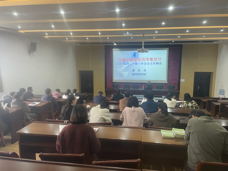 为全面深入学习领会党的二十届三中全会精神,根据学院《学习贯彻党的二十届三中全会精神学习工作方案》安排,11月20日下午,我院特邀原社会发展与管5357cc拉斯维加斯党委书记虞文清教授进行专题宣讲,全体师生党员参加。
