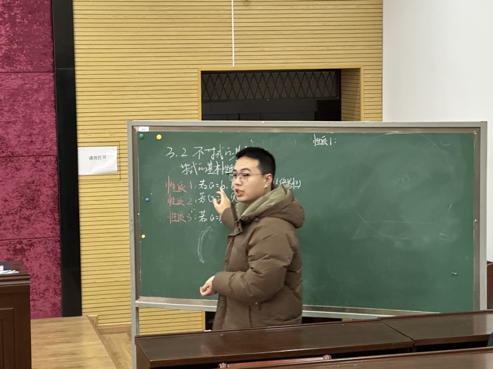 黄韬老师首先为大家介绍了本次活动的目的意义以及对实习情况进行梳理致辞,程名伟向同学们介绍本次比赛的规则与流程,接着在湖州四中、桐乡现代实验学校、桐乡丰子恺学校、长兴县龙山中学、长兴县古城中学、滨湖高级中学、安吉实验初中这几所中学参加实习的同学分别派出学生代表依次上台汇报自己的实习成果。林天铖、许成文、王坤菲、李子萌、杨光、何晋阳依次带来了自己的精彩微型课展示,体现了师范生的基本教学技能和扎实的数学专业知识。吴茗钰、杨书恒、陈子鹏进行了优秀教案汇报,通过PPT给大家展示了自己的优秀教案,从教学重难点、教学目标、教学过程、引入、小结等各方面进行了详细的介绍,与大家分享了巧妙且新颖的教学设计。许成文、毛佳怡、闫思勤分别汇报了自己在实习过程中的实践教育调研结果,分别从研究背景、研究对象、研究过程、研究结果等方面介绍了自己的研究成果和感悟。