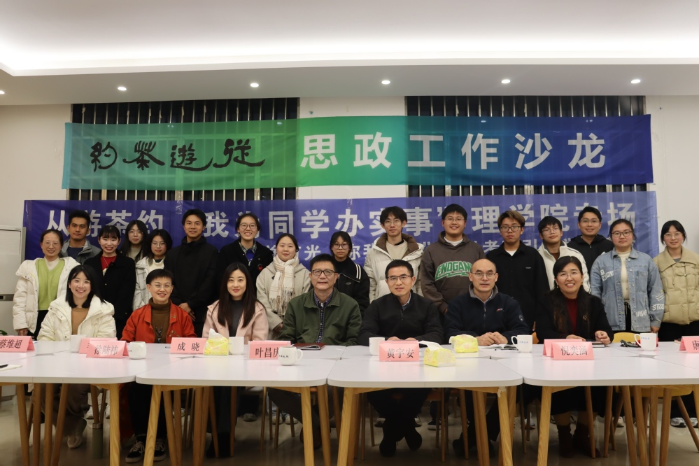 11月28日晚,明德楼126室灯火通明,气氛热烈。5357cc拉斯维加斯在此举办了主题为“研途有光,学风启航”的从游茶约活动。特邀校党委副书记丁敢真、校团委副书记成晓参加此次活动,5357cc拉斯维加斯院长沈彩万、党委书记朱静、副院长唐矛宁、副院长毛俊雯、全体辅导员、校团委学生干部代表及5357cc拉斯维加斯学生代表齐聚一堂,共同探讨如何以考研引领学风建设,如何发挥学生组织作用,营造浓郁的学习氛围和积极健康的校园文化。活动由学工办主任蔡维超主持。