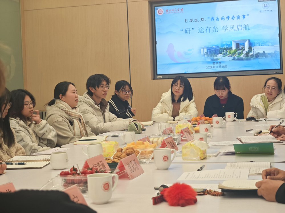 活动伊始,蔡维超对到场嘉宾表示热烈欢迎,并简要介绍了活动背景及目的。她提到,优良学风是赋能学生成长的重要力量,也是提升学生获得感和幸福感的关键因素。通过此次活动,学院希望能够倾听学生心声,解答学生困惑,引导学生进一步发挥“主人翁”意识,为学校发展建言献策。在研讨环节,学生们纷纷发言,他们表示学校为学生的成长和发展创造了良好的条件,老师们关心关爱学生。他们结合自身学习生活和服务学生经历,对学院的学风建设和学校发展提出了很好的建议和期待,如激发学生学习兴趣、改善住宿条件、优化学习氛围、增加低年级师范技能训练等。
