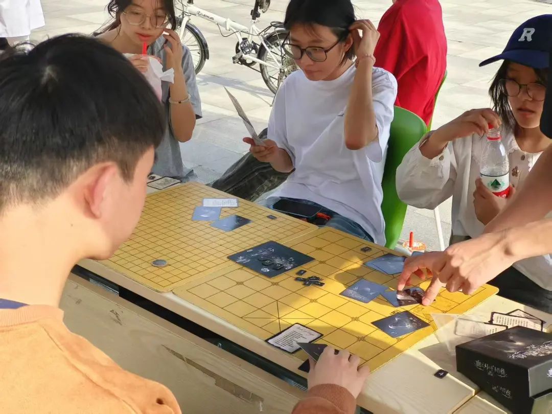 活动初始,为了让同学们感受到我们社团的活力与热情,我们事先组织工作人员进行“骗子酒馆”、uno牌等活动,吸引同学们前来参与。随着活动的开展,越来越多的人参与进来,不乏有独自一人前来对弈的,为此我们热情接待,安排工作人员与其共同对弈,致力于激发大家对传统棋类的喜爱,在此过程中完成“传薪”的重任;同时,也有许多同学被我们欢悦的游戏氛围所感染,想要共同参与。