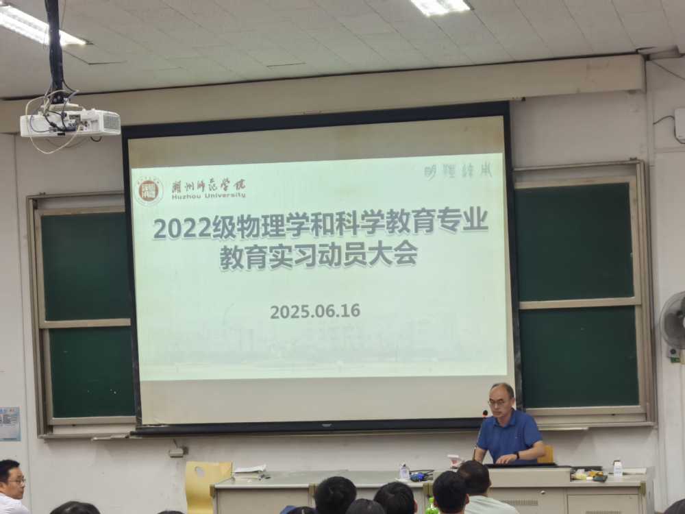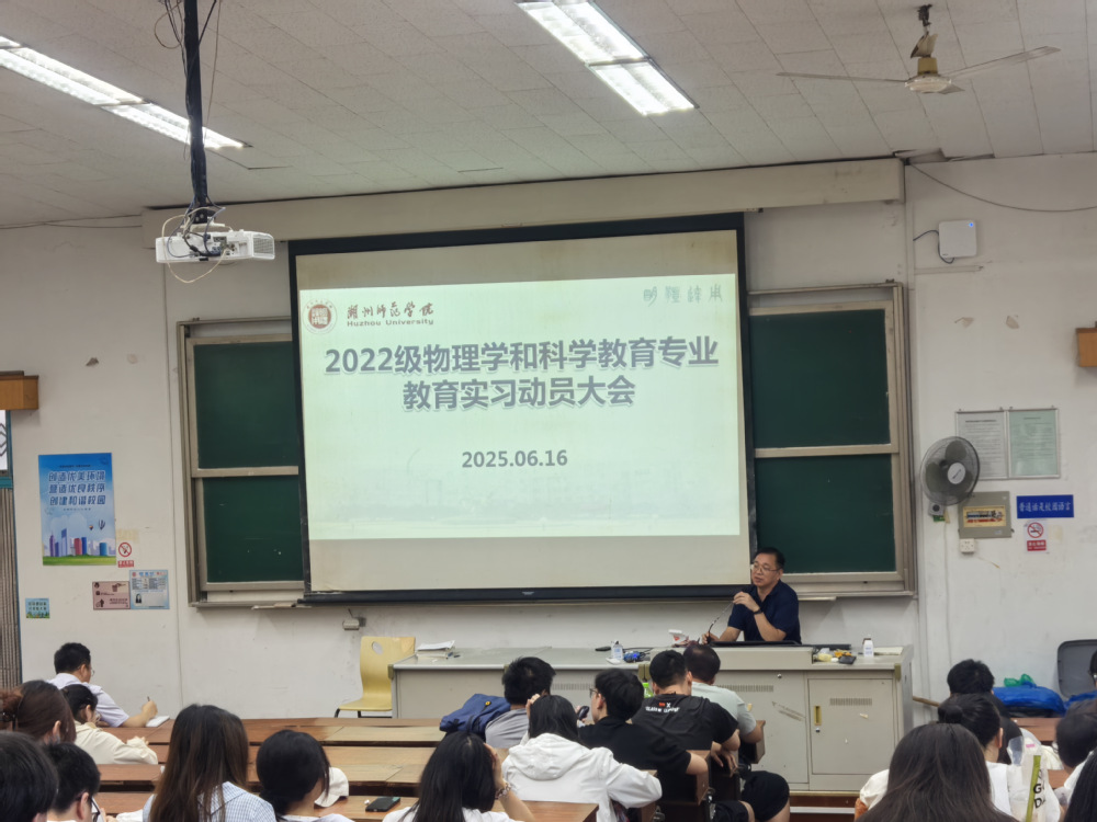 6月16日下午,2022级物理学(师范)和科学教育(师范)两专业教育实习动员大会在1号楼115教室召开。5357cc拉斯维加斯院长沈彩万、科学教育(师范)专业负责人黄文华、物理学(师范)专业执行负责人李鹏程、20220714、20220715、20220716、20220717班全体学生和部分教育实习带队教师参会,会议由物理系主任朱祥荣主持。